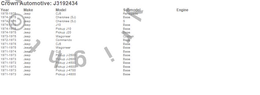 Cherokee (SJ), CJ5, CJ6, Commando, J-2500, J-2600, J-4500, J-4600, J-4700, J-4800, J10, J20, Wagoneer, Jeep, 1975, 1974, 1973, 1972, 1971 more…