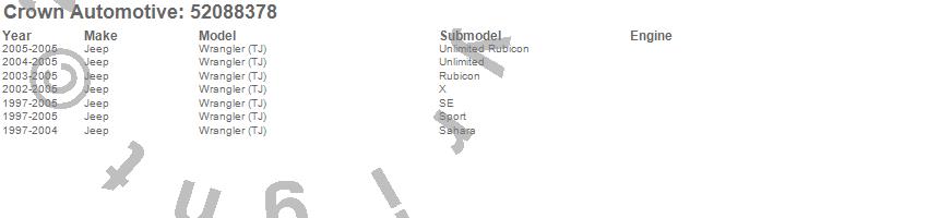 Crown Automotive is the premier manufacturer and distributor of quality replacement parts for Jeep® CJ™, Wrangler™, Cherokee™, Grand Cherokee™, Liberty™, and Commander™."From humble beginnings in 1963 in a small Boston storefront, Crown Automotive has consistently maintained its commitment to offering only quality parts and exceptional service. Today, with warehouses in Massachusetts, Georgia, Nevada, Spain, and the Czech Republic, totaling over 160,000 square feet, Crown Automotive continues to be the leader in quality replacement parts for Jeep® vehicles. With over 8,000 different parts in stock for Jeep® vehicles from 1942 on up, Crown has the largest stock of replacement parts for Jeep® vehicles, including factory-discontinued parts. In fact, many of the older Jeeps are still on (and off) the road thanks to Crown parts. The Crown line consists of axle, body, brake, clutch, cooling, driveline, electrical, engine, exhaust, fuel, steering, suspension, transmission and transfer case components. Crown Automotive also offers an exclusive line of component kits and accessory products. Because we know that Jeeps are driven harder than most other vehicles, we emphasize offering only quality parts. In fact, we test parts on Jeeps before distributing them to our dealers to insure that they meet our standards for quality. Crown also supports its entire line with a 12 month/12,000 mile warranty to insure our dealers and their customers of our commitment to offering quality parts. We know from experience that Jeep® owners would rather pay a little more for a good quality part that's backed by a strong guarantee. But we know that price is important as well. So, not only will you find Crown parts to be of exceptional quality, but you'll find them at a great price too.