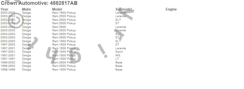 Ram 1500, Ram 2500, Ram 3500, Dodge, 2003, 2002, 2001, 2000, 1999, 1998, 1997, 1996 more…