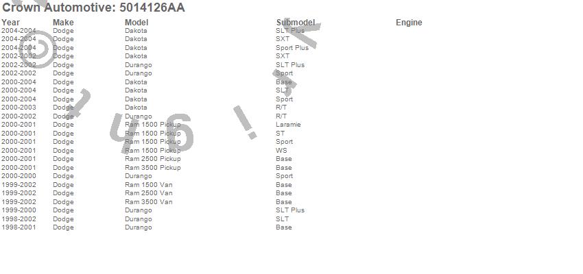 Dakota, Durango, Ram 1500, Ram 1500 Van, Ram 2500, Ram 2500 Van, Ram 3500, Ram 3500 Van, Dodge, 2004, 2003, 2002, 2001, 2000, 1999, 1998 more…