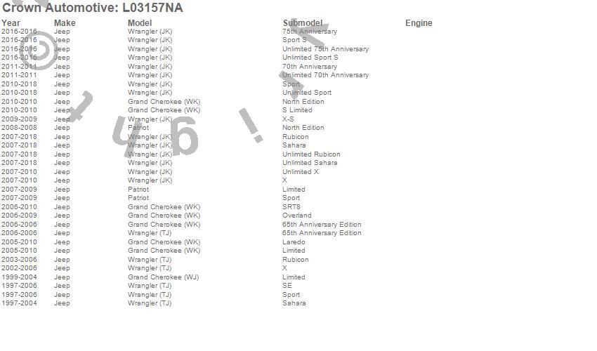 Grand Cherokee (WJ), Grand Cherokee (WK), Patriot, Wrangler (JK), Wrangler (TJ), Jeep, 2015, 2014, 2013, 2012, 2011, 2010, 2009, 2008, 2007, 2006, 2005, 2004, 2003, 2002 more…