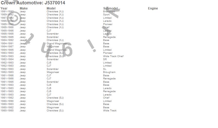 Cherokee (SJ), Cherokee (XJ), CJ5, CJ7, Grand Wagoneer, Scrambler, Wagoneer, Jeep, 1992, 1991, 1990, 1989, 1988, 1987, 1986, 1985, 1984, 1983, 1982, 1981 more…