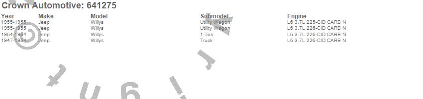 Crown Automotive is the premier manufacturer and distributor of quality replacement parts for Jeep® CJ™, Wrangler™, Cherokee™, Grand Cherokee™, Liberty™, and Commander™."From humble beginnings in 1963 in a small Boston storefront, Crown Automotive has consistently maintained its commitment to offering only quality parts and exceptional service. Today, with warehouses in Massachusetts, Georgia, Nevada, Spain, and the Czech Republic, totaling over 160,000 square feet, Crown Automotive continues to be the leader in quality replacement parts for Jeep® vehicles. With over 8,000 different parts in stock for Jeep® vehicles from 1942 on up, Crown has the largest stock of replacement parts for Jeep® vehicles, including factory-discontinued parts. In fact, many of the older Jeeps are still on (and off) the road thanks to Crown parts. The Crown line consists of axle, body, brake, clutch, cooling, driveline, electrical, engine, exhaust, fuel, steering, suspension, transmission and transfer case components. Crown Automotive also offers an exclusive line of component kits and accessory products. Because we know that Jeeps are driven harder than most other vehicles, we emphasize offering only quality parts. In fact, we test parts on Jeeps before distributing them to our dealers to insure that they meet our standards for quality. Crown also supports its entire line with a 12 month/12,000 mile warranty to insure our dealers and their customers of our commitment to offering quality parts. We know from experience that Jeep® owners would rather pay a little more for a good quality part that's backed by a strong guarantee. But we know that price is important as well. So, not only will you find Crown parts to be of exceptional quality, but you'll find them at a great price too.
