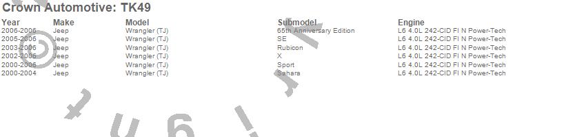 Crown Automotive Engine Tune Up Kit TK49 Features:
