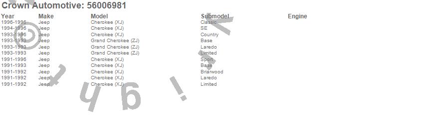 Crown Automotive is the premier manufacturer and distributor of quality replacement parts for Jeep® CJ™, Wrangler™, Cherokee™, Grand Cherokee™, Liberty™, and Commander™."From humble beginnings in 1963 in a small Boston storefront, Crown Automotive has consistently maintained its commitment to offering only quality parts and exceptional service. Today, with warehouses in Massachusetts, Georgia, Nevada, Spain, and the Czech Republic, totaling over 160,000 square feet, Crown Automotive continues to be the leader in quality replacement parts for Jeep® vehicles. With over 8,000 different parts in stock for Jeep® vehicles from 1942 on up, Crown has the largest stock of replacement parts for Jeep® vehicles, including factory-discontinued parts. In fact, many of the older Jeeps are still on (and off) the road thanks to Crown parts. The Crown line consists of axle, body, brake, clutch, cooling, driveline, electrical, engine, exhaust, fuel, steering, suspension, transmission and transfer case components. Crown Automotive also offers an exclusive line of component kits and accessory products. Because we know that Jeeps are driven harder than most other vehicles, we emphasize offering only quality parts. In fact, we test parts on Jeeps before distributing them to our dealers to insure that they meet our standards for quality. Crown also supports its entire line with a 12 month/12,000 mile warranty to insure our dealers and their customers of our commitment to offering quality parts. We know from experience that Jeep® owners would rather pay a little more for a good quality part that's backed by a strong guarantee. But we know that price is important as well. So, not only will you find Crown parts to be of exceptional quality, but you'll find them at a great price too.