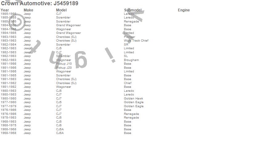 Cherokee (SJ), CJ5, CJ5A, CJ6, CJ6A, CJ7, Grand Wagoneer, J10, J20, Scrambler, Wagoneer, Jeep, 1986, 1985, 1984, 1983, 1982, 1981, 1980, 1979 more…