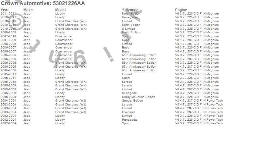Commander, Grand Cherokee (WJ), Grand Cherokee (WK), Liberty, Jeep, 2011, 2010, 2009, 2008, 2007, 2006, 2005, 2004, 2003, 2002 more…