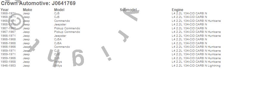 Crown Automotive is the premier manufacturer and distributor of quality replacement parts for Jeep® CJ™, Wrangler™, Cherokee™, Grand Cherokee™, Liberty™, and Commander™."From humble beginnings in 1963 in a small Boston storefront, Crown Automotive has consistently maintained its commitment to offering only quality parts and exceptional service. Today, with warehouses in Massachusetts, Georgia, Nevada, Spain, and the Czech Republic, totaling over 160,000 square feet, Crown Automotive continues to be the leader in quality replacement parts for Jeep® vehicles. With over 8,000 different parts in stock for Jeep® vehicles from 1942 on up, Crown has the largest stock of replacement parts for Jeep® vehicles, including factory-discontinued parts. In fact, many of the older Jeeps are still on (and off) the road thanks to Crown parts. The Crown line consists of axle, body, brake, clutch, cooling, driveline, electrical, engine, exhaust, fuel, steering, suspension, transmission and transfer case components. Crown Automotive also offers an exclusive line of component kits and accessory products. Because we know that Jeeps are driven harder than most other vehicles, we emphasize offering only quality parts. In fact, we test parts on Jeeps before distributing them to our dealers to insure that they meet our standards for quality. Crown also supports its entire line with a 12 month/12,000 mile warranty to insure our dealers and their customers of our commitment to offering quality parts. We know from experience that Jeep® owners would rather pay a little more for a good quality part that's backed by a strong guarantee. But we know that price is important as well. So, not only will you find Crown parts to be of exceptional quality, but you'll find them at a great price too.