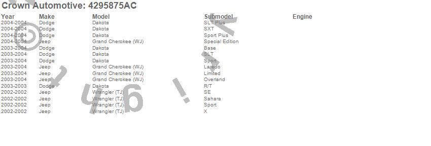 Dakota, Grand Cherokee (WJ), Wrangler (TJ), Dodge, Jeep, 2004, 2003, 2002 more…