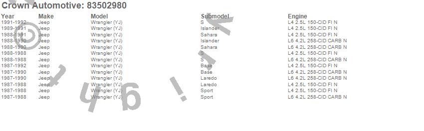 Crown Automotive is the premier manufacturer and distributor of quality replacement parts for Jeep® CJ™, Wrangler™, Cherokee™, Grand Cherokee™, Liberty™, and Commander™."From humble beginnings in 1963 in a small Boston storefront, Crown Automotive has consistently maintained its commitment to offering only quality parts and exceptional service. Today, with warehouses in Massachusetts, Georgia, Nevada, Spain, and the Czech Republic, totaling over 160,000 square feet, Crown Automotive continues to be the leader in quality replacement parts for Jeep® vehicles. With over 8,000 different parts in stock for Jeep® vehicles from 1942 on up, Crown has the largest stock of replacement parts for Jeep® vehicles, including factory-discontinued parts. In fact, many of the older Jeeps are still on (and off) the road thanks to Crown parts. The Crown line consists of axle, body, brake, clutch, cooling, driveline, electrical, engine, exhaust, fuel, steering, suspension, transmission and transfer case components. Crown Automotive also offers an exclusive line of component kits and accessory products. Because we know that Jeeps are driven harder than most other vehicles, we emphasize offering only quality parts. In fact, we test parts on Jeeps before distributing them to our dealers to insure that they meet our standards for quality. Crown also supports its entire line with a 12 month/12,000 mile warranty to insure our dealers and their customers of our commitment to offering quality parts. We know from experience that Jeep® owners would rather pay a little more for a good quality part that's backed by a strong guarantee. But we know that price is important as well. So, not only will you find Crown parts to be of exceptional quality, but you'll find them at a great price too.