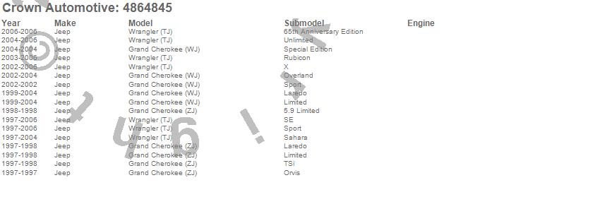 Crown Automotive is the premier manufacturer and distributor of quality replacement parts for Jeep® CJ™, Wrangler™, Cherokee™, Grand Cherokee™, Liberty™, and Commander™."From humble beginnings in 1963 in a small Boston storefront, Crown Automotive has consistently maintained its commitment to offering only quality parts and exceptional service. Today, with warehouses in Massachusetts, Georgia, Nevada, Spain, and the Czech Republic, totaling over 160,000 square feet, Crown Automotive continues to be the leader in quality replacement parts for Jeep® vehicles. With over 8,000 different parts in stock for Jeep® vehicles from 1942 on up, Crown has the largest stock of replacement parts for Jeep® vehicles, including factory-discontinued parts. In fact, many of the older Jeeps are still on (and off) the road thanks to Crown parts. The Crown line consists of axle, body, brake, clutch, cooling, driveline, electrical, engine, exhaust, fuel, steering, suspension, transmission and transfer case components. Crown Automotive also offers an exclusive line of component kits and accessory products. Because we know that Jeeps are driven harder than most other vehicles, we emphasize offering only quality parts. In fact, we test parts on Jeeps before distributing them to our dealers to insure that they meet our standards for quality. Crown also supports its entire line with a 12 month/12,000 mile warranty to insure our dealers and their customers of our commitment to offering quality parts. We know from experience that Jeep® owners would rather pay a little more for a good quality part that's backed by a strong guarantee. But we know that price is important as well. So, not only will you find Crown parts to be of exceptional quality, but you'll find them at a great price too.
