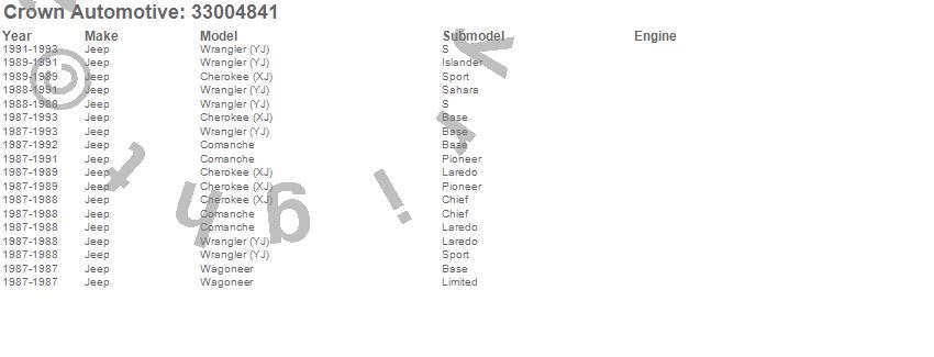 Crown Automotive is the premier manufacturer and distributor of quality replacement parts for Jeep® CJ™, Wrangler™, Cherokee™, Grand Cherokee™, Liberty™, and Commander™."From humble beginnings in 1963 in a small Boston storefront, Crown Automotive has consistently maintained its commitment to offering only quality parts and exceptional service. Today, with warehouses in Massachusetts, Georgia, Nevada, Spain, and the Czech Republic, totaling over 160,000 square feet, Crown Automotive continues to be the leader in quality replacement parts for Jeep® vehicles. With over 8,000 different parts in stock for Jeep® vehicles from 1942 on up, Crown has the largest stock of replacement parts for Jeep® vehicles, including factory-discontinued parts. In fact, many of the older Jeeps are still on (and off) the road thanks to Crown parts. The Crown line consists of axle, body, brake, clutch, cooling, driveline, electrical, engine, exhaust, fuel, steering, suspension, transmission and transfer case components. Crown Automotive also offers an exclusive line of component kits and accessory products. Because we know that Jeeps are driven harder than most other vehicles, we emphasize offering only quality parts. In fact, we test parts on Jeeps before distributing them to our dealers to insure that they meet our standards for quality. Crown also supports its entire line with a 12 month/12,000 mile warranty to insure our dealers and their customers of our commitment to offering quality parts. We know from experience that Jeep® owners would rather pay a little more for a good quality part that's backed by a strong guarantee. But we know that price is important as well. So, not only will you find Crown parts to be of exceptional quality, but you'll find them at a great price too.