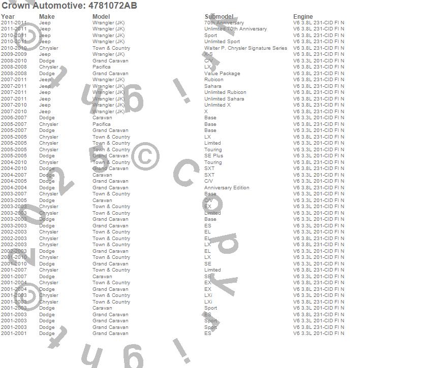 Caravan, Grand Caravan, Pacifica, Town & Country, Wrangler (JK), Chrysler, Dodge, Jeep, 2011, 2010, 2009, 2008, 2007, 2006, 2005, 2004, 2003, 2002, 2001 more…