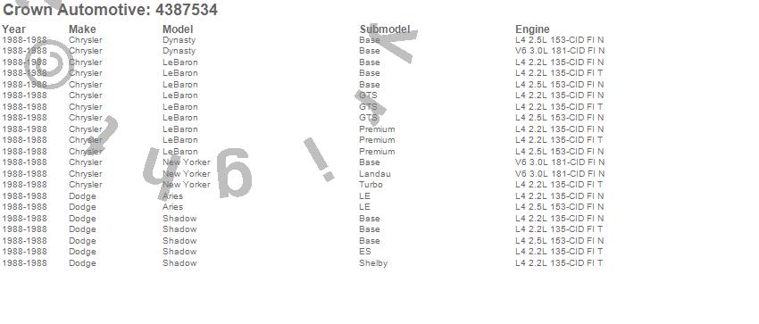 Crown Automotive Engine Timing Belt 4387534 Features: