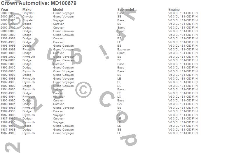 Caravan, Grand Caravan, Grand Voyager, Voyager, Chrysler, Dodge, Plymouth, 2000, 1999, 1998, 1997, 1996, 1995, 1994, 1993, 1992, 1991, 1990, 1989, 1988 more…