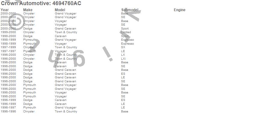 Caravan, Grand Caravan, Grand Voyager, Town & Country, Voyager, Chrysler, Dodge, Plymouth, 2000, 1999, 1998, 1997, 1996 more…