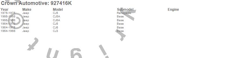 Crown Automotive is the premier manufacturer and distributor of quality replacement parts for Jeep® CJ™, Wrangler™, Cherokee™, Grand Cherokee™, Liberty™, and Commander™."From humble beginnings in 1963 in a small Boston storefront, Crown Automotive has consistently maintained its commitment to offering only quality parts and exceptional service. Today, with warehouses in Massachusetts, Georgia, Nevada, Spain, and the Czech Republic, totaling over 160,000 square feet, Crown Automotive continues to be the leader in quality replacement parts for Jeep® vehicles. With over 8,000 different parts in stock for Jeep® vehicles from 1942 on up, Crown has the largest stock of replacement parts for Jeep® vehicles, including factory-discontinued parts. In fact, many of the older Jeeps are still on (and off) the road thanks to Crown parts. The Crown line consists of axle, body, brake, clutch, cooling, driveline, electrical, engine, exhaust, fuel, steering, suspension, transmission and transfer case components. Crown Automotive also offers an exclusive line of component kits and accessory products. Because we know that Jeeps are driven harder than most other vehicles, we emphasize offering only quality parts. In fact, we test parts on Jeeps before distributing them to our dealers to insure that they meet our standards for quality. Crown also supports its entire line with a 12 month/12,000 mile warranty to insure our dealers and their customers of our commitment to offering quality parts. We know from experience that Jeep® owners would rather pay a little more for a good quality part that's backed by a strong guarantee. But we know that price is important as well. So, not only will you find Crown parts to be of exceptional quality, but you'll find them at a great price too.