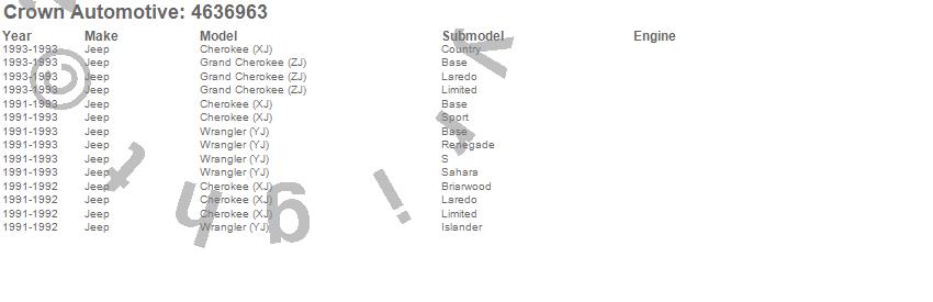 Crown Automotive is the premier manufacturer and distributor of quality replacement parts for Jeep® CJ™, Wrangler™, Cherokee™, Grand Cherokee™, Liberty™, and Commander™."From humble beginnings in 1963 in a small Boston storefront, Crown Automotive has consistently maintained its commitment to offering only quality parts and exceptional service. Today, with warehouses in Massachusetts, Georgia, Nevada, Spain, and the Czech Republic, totaling over 160,000 square feet, Crown Automotive continues to be the leader in quality replacement parts for Jeep® vehicles. With over 8,000 different parts in stock for Jeep® vehicles from 1942 on up, Crown has the largest stock of replacement parts for Jeep® vehicles, including factory-discontinued parts. In fact, many of the older Jeeps are still on (and off) the road thanks to Crown parts. The Crown line consists of axle, body, brake, clutch, cooling, driveline, electrical, engine, exhaust, fuel, steering, suspension, transmission and transfer case components. Crown Automotive also offers an exclusive line of component kits and accessory products. Because we know that Jeeps are driven harder than most other vehicles, we emphasize offering only quality parts. In fact, we test parts on Jeeps before distributing them to our dealers to insure that they meet our standards for quality. Crown also supports its entire line with a 12 month/12,000 mile warranty to insure our dealers and their customers of our commitment to offering quality parts. We know from experience that Jeep® owners would rather pay a little more for a good quality part that's backed by a strong guarantee. But we know that price is important as well. So, not only will you find Crown parts to be of exceptional quality, but you'll find them at a great price too.