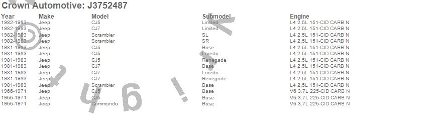 Crown Automotive is the premier manufacturer and distributor of quality replacement parts for Jeep® CJ™, Wrangler™, Cherokee™, Grand Cherokee™, Liberty™, and Commander™."From humble beginnings in 1963 in a small Boston storefront, Crown Automotive has consistently maintained its commitment to offering only quality parts and exceptional service. Today, with warehouses in Massachusetts, Georgia, Nevada, Spain, and the Czech Republic, totaling over 160,000 square feet, Crown Automotive continues to be the leader in quality replacement parts for Jeep® vehicles. With over 8,000 different parts in stock for Jeep® vehicles from 1942 on up, Crown has the largest stock of replacement parts for Jeep® vehicles, including factory-discontinued parts. In fact, many of the older Jeeps are still on (and off) the road thanks to Crown parts. The Crown line consists of axle, body, brake, clutch, cooling, driveline, electrical, engine, exhaust, fuel, steering, suspension, transmission and transfer case components. Crown Automotive also offers an exclusive line of component kits and accessory products. Because we know that Jeeps are driven harder than most other vehicles, we emphasize offering only quality parts. In fact, we test parts on Jeeps before distributing them to our dealers to insure that they meet our standards for quality. Crown also supports its entire line with a 12 month/12,000 mile warranty to insure our dealers and their customers of our commitment to offering quality parts. We know from experience that Jeep® owners would rather pay a little more for a good quality part that's backed by a strong guarantee. But we know that price is important as well. So, not only will you find Crown parts to be of exceptional quality, but you'll find them at a great price too.