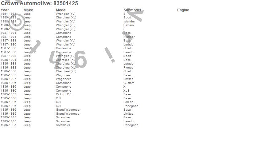 Cherokee (XJ), CJ7, Comanche, Grand Wagoneer, J10, Scrambler, Wagoneer, Wrangler (YJ), Jeep, 1991, 1990, 1989, 1988, 1987, 1986, 1985 more…