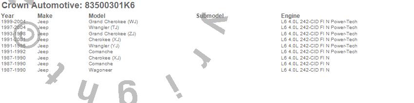 Cherokee (XJ), Comanche, Grand Cherokee (WJ), Grand Cherokee (ZJ), Wagoneer, Wrangler (LJ), Wrangler (TJ), Wrangler (YJ), Jeep, 2004, 2003, 2002, 2001, 2000, 1999, 1998, 1997, 1996, 1995, 1994 more…