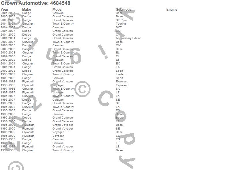 Caravan, Grand Caravan, Grand Voyager, Town & Country, Voyager, Chrysler, Dodge, Plymouth, 2007, 2006, 2005, 2004, 2003, 2002, 2001, 2000, 1999, 1998, 1997, 1996 more…
