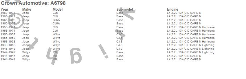 Crown Automotive is the premier manufacturer and distributor of quality replacement parts for Jeep® CJ™, Wrangler™, Cherokee™, Grand Cherokee™, Liberty™, and Commander™."From humble beginnings in 1963 in a small Boston storefront, Crown Automotive has consistently maintained its commitment to offering only quality parts and exceptional service. Today, with warehouses in Massachusetts, Georgia, Nevada, Spain, and the Czech Republic, totaling over 160,000 square feet, Crown Automotive continues to be the leader in quality replacement parts for Jeep® vehicles. With over 8,000 different parts in stock for Jeep® vehicles from 1942 on up, Crown has the largest stock of replacement parts for Jeep® vehicles, including factory-discontinued parts. In fact, many of the older Jeeps are still on (and off) the road thanks to Crown parts. The Crown line consists of axle, body, brake, clutch, cooling, driveline, electrical, engine, exhaust, fuel, steering, suspension, transmission and transfer case components. Crown Automotive also offers an exclusive line of component kits and accessory products. Because we know that Jeeps are driven harder than most other vehicles, we emphasize offering only quality parts. In fact, we test parts on Jeeps before distributing them to our dealers to insure that they meet our standards for quality. Crown also supports its entire line with a 12 month/12,000 mile warranty to insure our dealers and their customers of our commitment to offering quality parts. We know from experience that Jeep® owners would rather pay a little more for a good quality part that's backed by a strong guarantee. But we know that price is important as well. So, not only will you find Crown parts to be of exceptional quality, but you'll find them at a great price too.