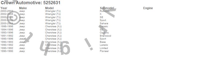 Crown Automotive is the premier manufacturer and distributor of quality replacement parts for Jeep® CJ™, Wrangler™, Cherokee™, Grand Cherokee™, Liberty™, and Commander™."From humble beginnings in 1963 in a small Boston storefront, Crown Automotive has consistently maintained its commitment to offering only quality parts and exceptional service. Today, with warehouses in Massachusetts, Georgia, Nevada, Spain, and the Czech Republic, totaling over 160,000 square feet, Crown Automotive continues to be the leader in quality replacement parts for Jeep® vehicles. With over 8,000 different parts in stock for Jeep® vehicles from 1942 on up, Crown has the largest stock of replacement parts for Jeep® vehicles, including factory-discontinued parts. In fact, many of the older Jeeps are still on (and off) the road thanks to Crown parts. The Crown line consists of axle, body, brake, clutch, cooling, driveline, electrical, engine, exhaust, fuel, steering, suspension, transmission and transfer case components. Crown Automotive also offers an exclusive line of component kits and accessory products. Because we know that Jeeps are driven harder than most other vehicles, we emphasize offering only quality parts. In fact, we test parts on Jeeps before distributing them to our dealers to insure that they meet our standards for quality. Crown also supports its entire line with a 12 month/12,000 mile warranty to insure our dealers and their customers of our commitment to offering quality parts. We know from experience that Jeep® owners would rather pay a little more for a good quality part that's backed by a strong guarantee. But we know that price is important as well. So, not only will you find Crown parts to be of exceptional quality, but you'll find them at a great price too.