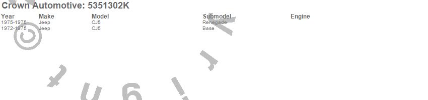 Crown Automotive is the premier manufacturer and distributor of quality replacement parts for Jeep® CJ™, Wrangler™, Cherokee™, Grand Cherokee™, Liberty™, and Commander™."From humble beginnings in 1963 in a small Boston storefront, Crown Automotive has consistently maintained its commitment to offering only quality parts and exceptional service. Today, with warehouses in Massachusetts, Georgia, Nevada, Spain, and the Czech Republic, totaling over 160,000 square feet, Crown Automotive continues to be the leader in quality replacement parts for Jeep® vehicles. With over 8,000 different parts in stock for Jeep® vehicles from 1942 on up, Crown has the largest stock of replacement parts for Jeep® vehicles, including factory-discontinued parts. In fact, many of the older Jeeps are still on (and off) the road thanks to Crown parts. The Crown line consists of axle, body, brake, clutch, cooling, driveline, electrical, engine, exhaust, fuel, steering, suspension, transmission and transfer case components. Crown Automotive also offers an exclusive line of component kits and accessory products. Because we know that Jeeps are driven harder than most other vehicles, we emphasize offering only quality parts. In fact, we test parts on Jeeps before distributing them to our dealers to insure that they meet our standards for quality. Crown also supports its entire line with a 12 month/12,000 mile warranty to insure our dealers and their customers of our commitment to offering quality parts. We know from experience that Jeep® owners would rather pay a little more for a good quality part that's backed by a strong guarantee. But we know that price is important as well. So, not only will you find Crown parts to be of exceptional quality, but you'll find them at a great price too.