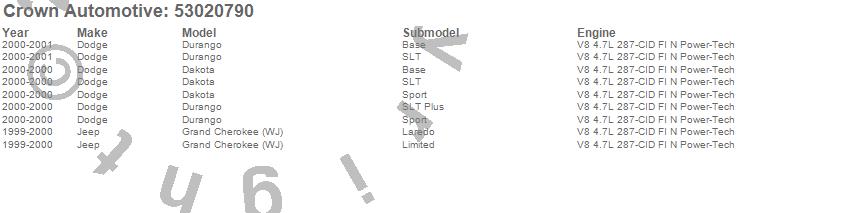 Dakota, Durango, Grand Cherokee (WJ), Dodge, Jeep, 2001, 2000, 1999 more…
