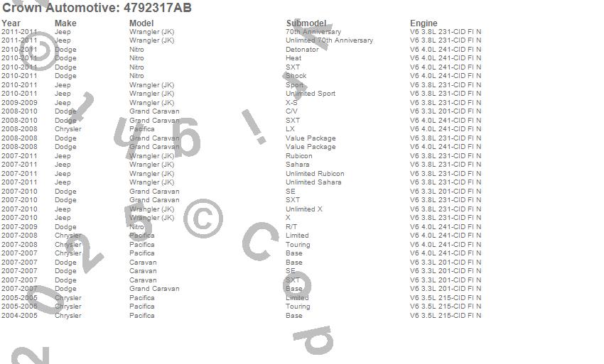 Caravan, Grand Caravan, Nitro, Pacifica, Wrangler (JK), Chrysler, Dodge, Jeep, 2011, 2010, 2009, 2008, 2007, 2005, 2004 more…