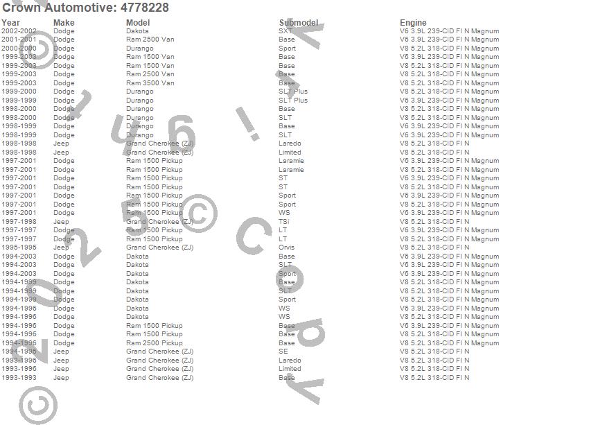 Dakota, Durango, Grand Cherokee (ZJ), Ram 1500, Ram 1500 Van, Ram 2500, Ram 2500 Van, Ram 3500 Van, Dodge, Jeep, 2003, 2002, 2001, 2000, 1999, 1998, 1997, 1996, 1995, 1994 more…