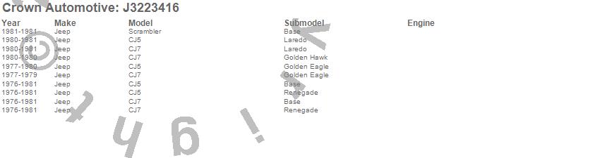 Crown Automotive is the premier manufacturer and distributor of quality replacement parts for Jeep® CJ™, Wrangler™, Cherokee™, Grand Cherokee™, Liberty™, and Commander™."From humble beginnings in 1963 in a small Boston storefront, Crown Automotive has consistently maintained its commitment to offering only quality parts and exceptional service. Today, with warehouses in Massachusetts, Georgia, Nevada, Spain, and the Czech Republic, totaling over 160,000 square feet, Crown Automotive continues to be the leader in quality replacement parts for Jeep® vehicles. With over 8,000 different parts in stock for Jeep® vehicles from 1942 on up, Crown has the largest stock of replacement parts for Jeep® vehicles, including factory-discontinued parts. In fact, many of the older Jeeps are still on (and off) the road thanks to Crown parts. The Crown line consists of axle, body, brake, clutch, cooling, driveline, electrical, engine, exhaust, fuel, steering, suspension, transmission and transfer case components. Crown Automotive also offers an exclusive line of component kits and accessory products. Because we know that Jeeps are driven harder than most other vehicles, we emphasize offering only quality parts. In fact, we test parts on Jeeps before distributing them to our dealers to insure that they meet our standards for quality. Crown also supports its entire line with a 12 month/12,000 mile warranty to insure our dealers and their customers of our commitment to offering quality parts. We know from experience that Jeep® owners would rather pay a little more for a good quality part that's backed by a strong guarantee. But we know that price is important as well. So, not only will you find Crown parts to be of exceptional quality, but you'll find them at a great price too.