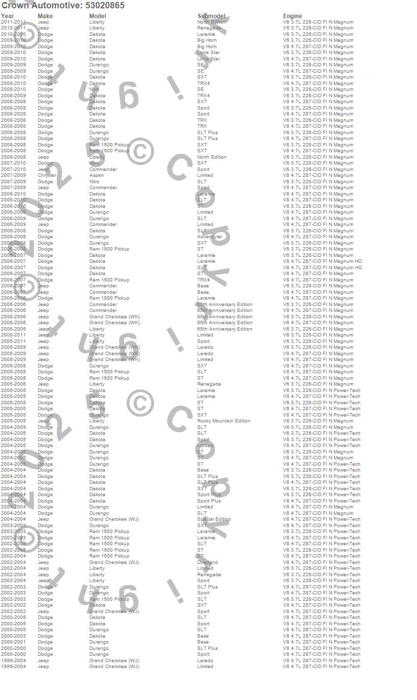 Aspen, Commander, Dakota, Durango, Grand Cherokee (WJ), Grand Cherokee (WK), Liberty, Nitro, Ram 1500, Chrysler, Dodge, Jeep, 2011, 2010, 2009, 2008, 2007, 2006, 2005, 2004 more…