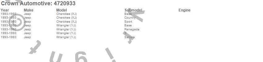 Crown Automotive is the premier manufacturer and distributor of quality replacement parts for Jeep® CJ™, Wrangler™, Cherokee™, Grand Cherokee™, Liberty™, and Commander™."From humble beginnings in 1963 in a small Boston storefront, Crown Automotive has consistently maintained its commitment to offering only quality parts and exceptional service. Today, with warehouses in Massachusetts, Georgia, Nevada, Spain, and the Czech Republic, totaling over 160,000 square feet, Crown Automotive continues to be the leader in quality replacement parts for Jeep® vehicles. With over 8,000 different parts in stock for Jeep® vehicles from 1942 on up, Crown has the largest stock of replacement parts for Jeep® vehicles, including factory-discontinued parts. In fact, many of the older Jeeps are still on (and off) the road thanks to Crown parts. The Crown line consists of axle, body, brake, clutch, cooling, driveline, electrical, engine, exhaust, fuel, steering, suspension, transmission and transfer case components. Crown Automotive also offers an exclusive line of component kits and accessory products. Because we know that Jeeps are driven harder than most other vehicles, we emphasize offering only quality parts. In fact, we test parts on Jeeps before distributing them to our dealers to insure that they meet our standards for quality. Crown also supports its entire line with a 12 month/12,000 mile warranty to insure our dealers and their customers of our commitment to offering quality parts. We know from experience that Jeep® owners would rather pay a little more for a good quality part that's backed by a strong guarantee. But we know that price is important as well. So, not only will you find Crown parts to be of exceptional quality, but you'll find them at a great price too.