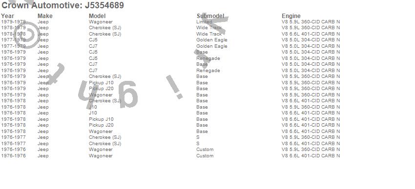 Crown Automotive is the premier manufacturer and distributor of quality replacement parts for Jeep® CJ™, Wrangler™, Cherokee™, Grand Cherokee™, Liberty™, and Commander™."From humble beginnings in 1963 in a small Boston storefront, Crown Automotive has consistently maintained its commitment to offering only quality parts and exceptional service. Today, with warehouses in Massachusetts, Georgia, Nevada, Spain, and the Czech Republic, totaling over 160,000 square feet, Crown Automotive continues to be the leader in quality replacement parts for Jeep® vehicles. With over 8,000 different parts in stock for Jeep® vehicles from 1942 on up, Crown has the largest stock of replacement parts for Jeep® vehicles, including factory-discontinued parts. In fact, many of the older Jeeps are still on (and off) the road thanks to Crown parts. The Crown line consists of axle, body, brake, clutch, cooling, driveline, electrical, engine, exhaust, fuel, steering, suspension, transmission and transfer case components. Crown Automotive also offers an exclusive line of component kits and accessory products. Because we know that Jeeps are driven harder than most other vehicles, we emphasize offering only quality parts. In fact, we test parts on Jeeps before distributing them to our dealers to insure that they meet our standards for quality. Crown also supports its entire line with a 12 month/12,000 mile warranty to insure our dealers and their customers of our commitment to offering quality parts. We know from experience that Jeep® owners would rather pay a little more for a good quality part that's backed by a strong guarantee. But we know that price is important as well. So, not only will you find Crown parts to be of exceptional quality, but you'll find them at a great price too.