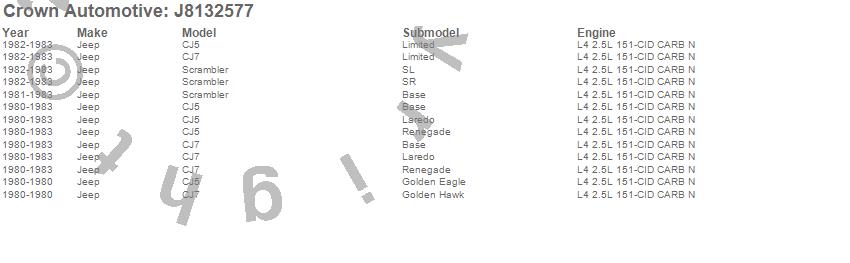 Crown Automotive is the premier manufacturer and distributor of quality replacement parts for Jeep® CJ™, Wrangler™, Cherokee™, Grand Cherokee™, Liberty™, and Commander™."From humble beginnings in 1963 in a small Boston storefront, Crown Automotive has consistently maintained its commitment to offering only quality parts and exceptional service. Today, with warehouses in Massachusetts, Georgia, Nevada, Spain, and the Czech Republic, totaling over 160,000 square feet, Crown Automotive continues to be the leader in quality replacement parts for Jeep® vehicles. With over 8,000 different parts in stock for Jeep® vehicles from 1942 on up, Crown has the largest stock of replacement parts for Jeep® vehicles, including factory-discontinued parts. In fact, many of the older Jeeps are still on (and off) the road thanks to Crown parts. The Crown line consists of axle, body, brake, clutch, cooling, driveline, electrical, engine, exhaust, fuel, steering, suspension, transmission and transfer case components. Crown Automotive also offers an exclusive line of component kits and accessory products. Because we know that Jeeps are driven harder than most other vehicles, we emphasize offering only quality parts. In fact, we test parts on Jeeps before distributing them to our dealers to insure that they meet our standards for quality. Crown also supports its entire line with a 12 month/12,000 mile warranty to insure our dealers and their customers of our commitment to offering quality parts. We know from experience that Jeep® owners would rather pay a little more for a good quality part that's backed by a strong guarantee. But we know that price is important as well. So, not only will you find Crown parts to be of exceptional quality, but you'll find them at a great price too.