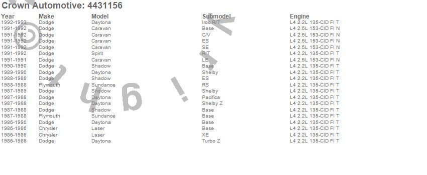 Caravan, Daytona, Laser, Shadow, Spirit, Sundance, Chrysler, Dodge, Plymouth, 1993, 1992, 1991, 1990, 1989, 1988, 1987, 1986 more…