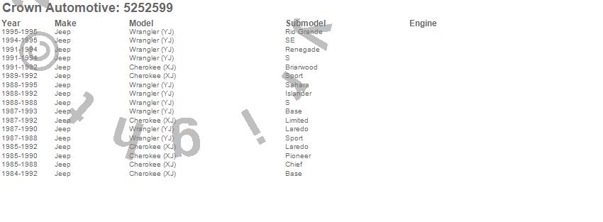 Crown Automotive is the premier manufacturer and distributor of quality replacement parts for Jeep® CJ™, Wrangler™, Cherokee™, Grand Cherokee™, Liberty™, and Commander™."From humble beginnings in 1963 in a small Boston storefront, Crown Automotive has consistently maintained its commitment to offering only quality parts and exceptional service. Today, with warehouses in Massachusetts, Georgia, Nevada, Spain, and the Czech Republic, totaling over 160,000 square feet, Crown Automotive continues to be the leader in quality replacement parts for Jeep® vehicles. With over 8,000 different parts in stock for Jeep® vehicles from 1942 on up, Crown has the largest stock of replacement parts for Jeep® vehicles, including factory-discontinued parts. In fact, many of the older Jeeps are still on (and off) the road thanks to Crown parts. The Crown line consists of axle, body, brake, clutch, cooling, driveline, electrical, engine, exhaust, fuel, steering, suspension, transmission and transfer case components. Crown Automotive also offers an exclusive line of component kits and accessory products. Because we know that Jeeps are driven harder than most other vehicles, we emphasize offering only quality parts. In fact, we test parts on Jeeps before distributing them to our dealers to insure that they meet our standards for quality. Crown also supports its entire line with a 12 month/12,000 mile warranty to insure our dealers and their customers of our commitment to offering quality parts. We know from experience that Jeep® owners would rather pay a little more for a good quality part that's backed by a strong guarantee. But we know that price is important as well. So, not only will you find Crown parts to be of exceptional quality, but you'll find them at a great price too.