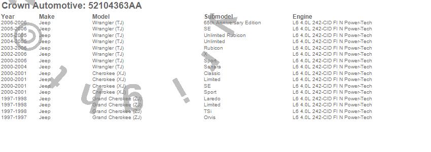 Crown Automotive is the premier manufacturer and distributor of quality replacement parts for Jeep® CJ™, Wrangler™, Cherokee™, Grand Cherokee™, Liberty™, and Commander™."From humble beginnings in 1963 in a small Boston storefront, Crown Automotive has consistently maintained its commitment to offering only quality parts and exceptional service. Today, with warehouses in Massachusetts, Georgia, Nevada, Spain, and the Czech Republic, totaling over 160,000 square feet, Crown Automotive continues to be the leader in quality replacement parts for Jeep® vehicles. With over 8,000 different parts in stock for Jeep® vehicles from 1942 on up, Crown has the largest stock of replacement parts for Jeep® vehicles, including factory-discontinued parts. In fact, many of the older Jeeps are still on (and off) the road thanks to Crown parts. The Crown line consists of axle, body, brake, clutch, cooling, driveline, electrical, engine, exhaust, fuel, steering, suspension, transmission and transfer case components. Crown Automotive also offers an exclusive line of component kits and accessory products. Because we know that Jeeps are driven harder than most other vehicles, we emphasize offering only quality parts. In fact, we test parts on Jeeps before distributing them to our dealers to insure that they meet our standards for quality. Crown also supports its entire line with a 12 month/12,000 mile warranty to insure our dealers and their customers of our commitment to offering quality parts. We know from experience that Jeep® owners would rather pay a little more for a good quality part that's backed by a strong guarantee. But we know that price is important as well. So, not only will you find Crown parts to be of exceptional quality, but you'll find them at a great price too.