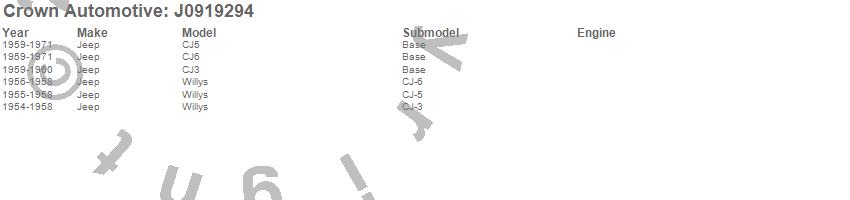 Crown Automotive is the premier manufacturer and distributor of quality replacement parts for Jeep® CJ™, Wrangler™, Cherokee™, Grand Cherokee™, Liberty™, and Commander™."From humble beginnings in 1963 in a small Boston storefront, Crown Automotive has consistently maintained its commitment to offering only quality parts and exceptional service. Today, with warehouses in Massachusetts, Georgia, Nevada, Spain, and the Czech Republic, totaling over 160,000 square feet, Crown Automotive continues to be the leader in quality replacement parts for Jeep® vehicles. With over 8,000 different parts in stock for Jeep® vehicles from 1942 on up, Crown has the largest stock of replacement parts for Jeep® vehicles, including factory-discontinued parts. In fact, many of the older Jeeps are still on (and off) the road thanks to Crown parts. The Crown line consists of axle, body, brake, clutch, cooling, driveline, electrical, engine, exhaust, fuel, steering, suspension, transmission and transfer case components. Crown Automotive also offers an exclusive line of component kits and accessory products. Because we know that Jeeps are driven harder than most other vehicles, we emphasize offering only quality parts. In fact, we test parts on Jeeps before distributing them to our dealers to insure that they meet our standards for quality. Crown also supports its entire line with a 12 month/12,000 mile warranty to insure our dealers and their customers of our commitment to offering quality parts. We know from experience that Jeep® owners would rather pay a little more for a good quality part that's backed by a strong guarantee. But we know that price is important as well. So, not only will you find Crown parts to be of exceptional quality, but you'll find them at a great price too.