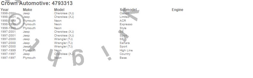 Cherokee (XJ), Neon, Wrangler (TJ), Jeep, Plymouth, 2001, 2000, 1999, 1998, 1997 more…
