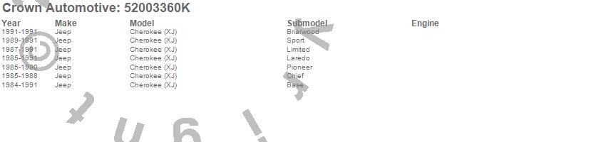 Crown Automotive is the premier manufacturer and distributor of quality replacement parts for Jeep® CJ™, Wrangler™, Cherokee™, Grand Cherokee™, Liberty™, and Commander™."From humble beginnings in 1963 in a small Boston storefront, Crown Automotive has consistently maintained its commitment to offering only quality parts and exceptional service. Today, with warehouses in Massachusetts, Georgia, Nevada, Spain, and the Czech Republic, totaling over 160,000 square feet, Crown Automotive continues to be the leader in quality replacement parts for Jeep® vehicles. With over 8,000 different parts in stock for Jeep® vehicles from 1942 on up, Crown has the largest stock of replacement parts for Jeep® vehicles, including factory-discontinued parts. In fact, many of the older Jeeps are still on (and off) the road thanks to Crown parts. The Crown line consists of axle, body, brake, clutch, cooling, driveline, electrical, engine, exhaust, fuel, steering, suspension, transmission and transfer case components. Crown Automotive also offers an exclusive line of component kits and accessory products. Because we know that Jeeps are driven harder than most other vehicles, we emphasize offering only quality parts. In fact, we test parts on Jeeps before distributing them to our dealers to insure that they meet our standards for quality. Crown also supports its entire line with a 12 month/12,000 mile warranty to insure our dealers and their customers of our commitment to offering quality parts. We know from experience that Jeep® owners would rather pay a little more for a good quality part that's backed by a strong guarantee. But we know that price is important as well. So, not only will you find Crown parts to be of exceptional quality, but you'll find them at a great price too.