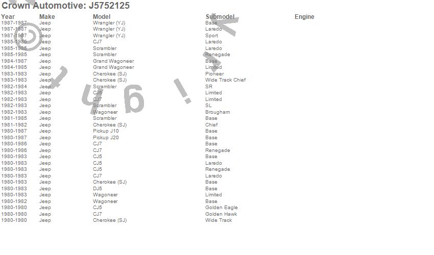 Cherokee (SJ), CJ5, CJ7, DJ5, Grand Wagoneer, J10, J20, Scrambler, Wagoneer, Wrangler (YJ), Jeep, 1987, 1986, 1985, 1984, 1983, 1982, 1981, 1980 more…