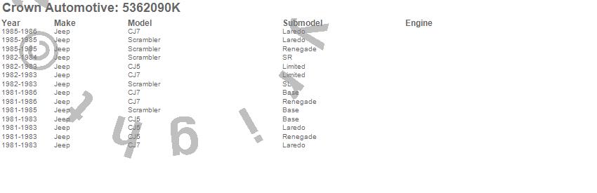 Crown Automotive is the premier manufacturer and distributor of quality replacement parts for Jeep® CJ™, Wrangler™, Cherokee™, Grand Cherokee™, Liberty™, and Commander™."From humble beginnings in 1963 in a small Boston storefront, Crown Automotive has consistently maintained its commitment to offering only quality parts and exceptional service. Today, with warehouses in Massachusetts, Georgia, Nevada, Spain, and the Czech Republic, totaling over 160,000 square feet, Crown Automotive continues to be the leader in quality replacement parts for Jeep® vehicles. With over 8,000 different parts in stock for Jeep® vehicles from 1942 on up, Crown has the largest stock of replacement parts for Jeep® vehicles, including factory-discontinued parts. In fact, many of the older Jeeps are still on (and off) the road thanks to Crown parts. The Crown line consists of axle, body, brake, clutch, cooling, driveline, electrical, engine, exhaust, fuel, steering, suspension, transmission and transfer case components. Crown Automotive also offers an exclusive line of component kits and accessory products. Because we know that Jeeps are driven harder than most other vehicles, we emphasize offering only quality parts. In fact, we test parts on Jeeps before distributing them to our dealers to insure that they meet our standards for quality. Crown also supports its entire line with a 12 month/12,000 mile warranty to insure our dealers and their customers of our commitment to offering quality parts. We know from experience that Jeep® owners would rather pay a little more for a good quality part that's backed by a strong guarantee. But we know that price is important as well. So, not only will you find Crown parts to be of exceptional quality, but you'll find them at a great price too.