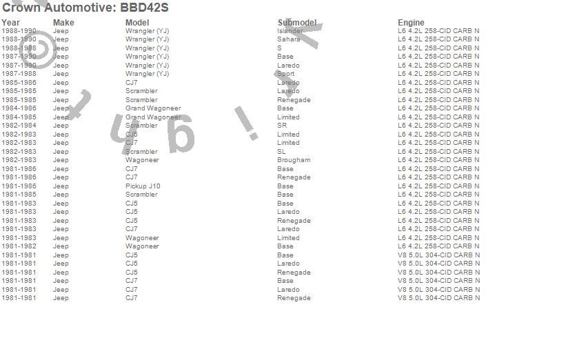 Crown Automotive Carburetor BBD42S Features: