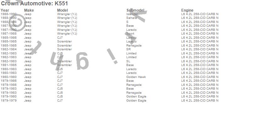 Crown Automotive is the premier manufacturer and distributor of quality replacement parts for Jeep® CJ™, Wrangler™, Cherokee™, Grand Cherokee™, Liberty™, and Commander™."From humble beginnings in 1963 in a small Boston storefront, Crown Automotive has consistently maintained its commitment to offering only quality parts and exceptional service. Today, with warehouses in Massachusetts, Georgia, Nevada, Spain, and the Czech Republic, totaling over 160,000 square feet, Crown Automotive continues to be the leader in quality replacement parts for Jeep® vehicles. With over 8,000 different parts in stock for Jeep® vehicles from 1942 on up, Crown has the largest stock of replacement parts for Jeep® vehicles, including factory-discontinued parts. In fact, many of the older Jeeps are still on (and off) the road thanks to Crown parts. The Crown line consists of axle, body, brake, clutch, cooling, driveline, electrical, engine, exhaust, fuel, steering, suspension, transmission and transfer case components. Crown Automotive also offers an exclusive line of component kits and accessory products. Because we know that Jeeps are driven harder than most other vehicles, we emphasize offering only quality parts. In fact, we test parts on Jeeps before distributing them to our dealers to insure that they meet our standards for quality. Crown also supports its entire line with a 12 month/12,000 mile warranty to insure our dealers and their customers of our commitment to offering quality parts. We know from experience that Jeep® owners would rather pay a little more for a good quality part that's backed by a strong guarantee. But we know that price is important as well. So, not only will you find Crown parts to be of exceptional quality, but you'll find them at a great price too.