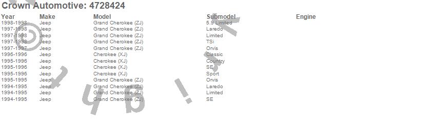 Crown Automotive is the premier manufacturer and distributor of quality replacement parts for Jeep® CJ™, Wrangler™, Cherokee™, Grand Cherokee™, Liberty™, and Commander™."From humble beginnings in 1963 in a small Boston storefront, Crown Automotive has consistently maintained its commitment to offering only quality parts and exceptional service. Today, with warehouses in Massachusetts, Georgia, Nevada, Spain, and the Czech Republic, totaling over 160,000 square feet, Crown Automotive continues to be the leader in quality replacement parts for Jeep® vehicles. With over 8,000 different parts in stock for Jeep® vehicles from 1942 on up, Crown has the largest stock of replacement parts for Jeep® vehicles, including factory-discontinued parts. In fact, many of the older Jeeps are still on (and off) the road thanks to Crown parts. The Crown line consists of axle, body, brake, clutch, cooling, driveline, electrical, engine, exhaust, fuel, steering, suspension, transmission and transfer case components. Crown Automotive also offers an exclusive line of component kits and accessory products. Because we know that Jeeps are driven harder than most other vehicles, we emphasize offering only quality parts. In fact, we test parts on Jeeps before distributing them to our dealers to insure that they meet our standards for quality. Crown also supports its entire line with a 12 month/12,000 mile warranty to insure our dealers and their customers of our commitment to offering quality parts. We know from experience that Jeep® owners would rather pay a little more for a good quality part that's backed by a strong guarantee. But we know that price is important as well. So, not only will you find Crown parts to be of exceptional quality, but you'll find them at a great price too.