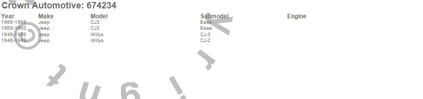 Crown Automotive is the premier manufacturer and distributor of quality replacement parts for Jeep® CJ™, Wrangler™, Cherokee™, Grand Cherokee™, Liberty™, and Commander™."From humble beginnings in 1963 in a small Boston storefront, Crown Automotive has consistently maintained its commitment to offering only quality parts and exceptional service. Today, with warehouses in Massachusetts, Georgia, Nevada, Spain, and the Czech Republic, totaling over 160,000 square feet, Crown Automotive continues to be the leader in quality replacement parts for Jeep® vehicles. With over 8,000 different parts in stock for Jeep® vehicles from 1942 on up, Crown has the largest stock of replacement parts for Jeep® vehicles, including factory-discontinued parts. In fact, many of the older Jeeps are still on (and off) the road thanks to Crown parts. The Crown line consists of axle, body, brake, clutch, cooling, driveline, electrical, engine, exhaust, fuel, steering, suspension, transmission and transfer case components. Crown Automotive also offers an exclusive line of component kits and accessory products. Because we know that Jeeps are driven harder than most other vehicles, we emphasize offering only quality parts. In fact, we test parts on Jeeps before distributing them to our dealers to insure that they meet our standards for quality. Crown also supports its entire line with a 12 month/12,000 mile warranty to insure our dealers and their customers of our commitment to offering quality parts. We know from experience that Jeep® owners would rather pay a little more for a good quality part that's backed by a strong guarantee. But we know that price is important as well. So, not only will you find Crown parts to be of exceptional quality, but you'll find them at a great price too.