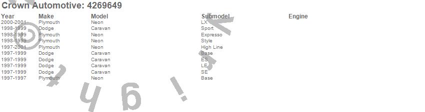 Crown Automotive Transaxle Filter 4269649 Features: